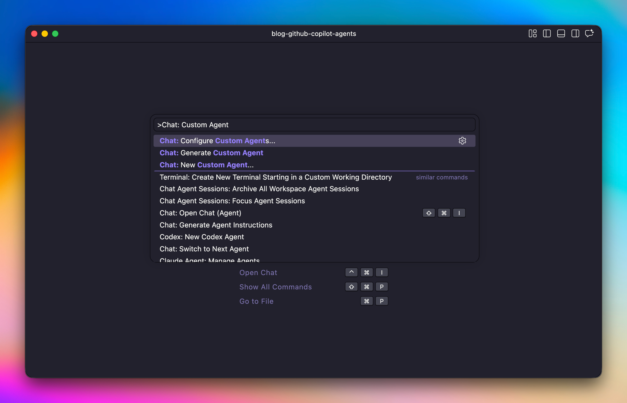 Custom Agents live in the .github/agents/ directory at the root of your repo. Each agent is a single markdown file using the .agent.md extension, and the part before .agent.md becomes the agent's identifier. So .github/agents/security-reviewer.agent.md gives you an agent called security-reviewer. GitHub only allows a-z, A-Z, 0-9, ., -, and _ in the filename, so I stick with lowercase and hyphens, short enough to type from memory, because you'll invoke them often.